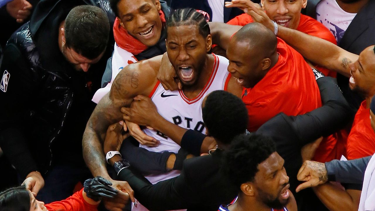 It wasn't designed on the fly. Kawhi leonard and his teammates watch as the ball bounces around the rim before falling through as time expires sunday in game 7. Kawhi leonard sends philadelphia 76ers home with epic buzzer beater in game 7. When the ball finally went in, the announcers and the crowd went crazy. The raptors will face the milwaukee bucks in the eastern.